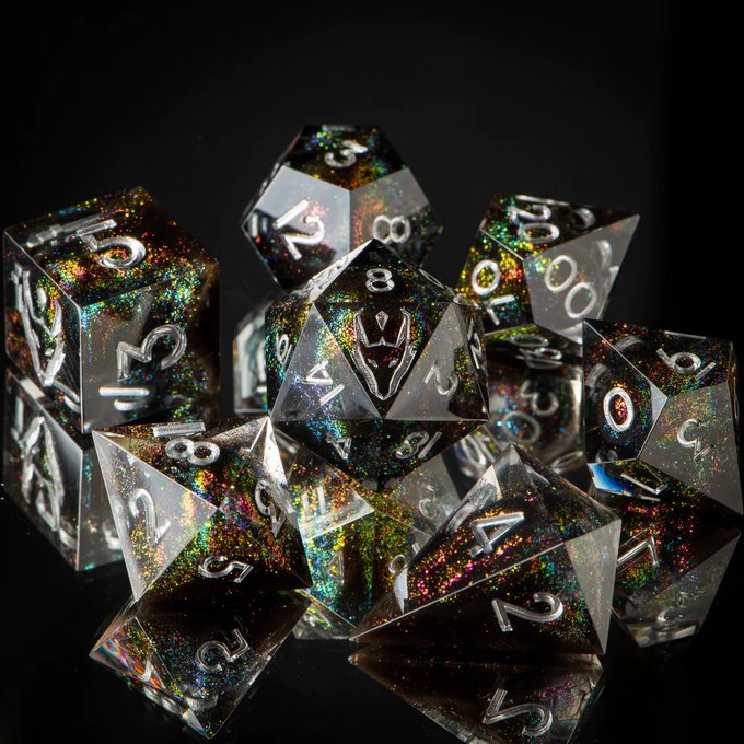 Pt2 -Made a Essek/Dunamancy set =D used some silver ink to make a mote of possibility in them!Quite happy with the result! #diceset #handmadedice #dice #dungeonsanddragons #ttrpg #resin #dicemaker #dicemaking #criticalrolefanart #CriticalRole #essekthelyss #essek #polyhedraldice