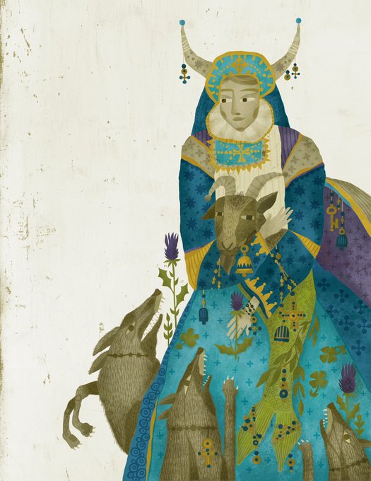 Dierdre of the Burren. #illustration #illustrator #style #different #irish #saint #goat #wolves #mergoat #shamrocks #thistle @those3reps @WorkbookArt
