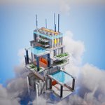 “Sky Lab” ☁️ Took a break from islands last night and had a play around with @paulriehle kit bash building set 🏙 It’s an amazing set of assets! #voxels #voxel #magicavoxel #voxelvibes #megavoxel #digialart #voxelart #digitalarchitecture #isometric #isometricart