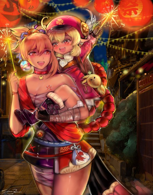 I WORKED ON THIS FOR 15 HOURS STRAIGHT omg. I’m so incredibly proud how it turned out. Welcome my newest piece, #yoimiya and #klee enjoying festival time! Prints will be available on my website soon so stay tuned!#Genshinlmpact #genshinimpactfanart #fanart #digialart