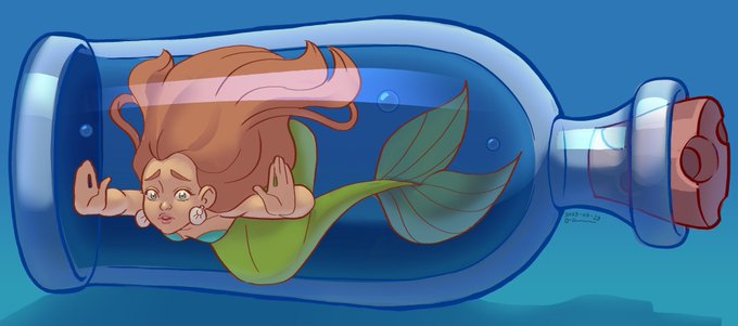 Mermaid stuck in a bottle drifting away on the big sea. #mermay #mermay2023 #digiralart #illustration #mermaid