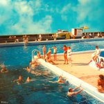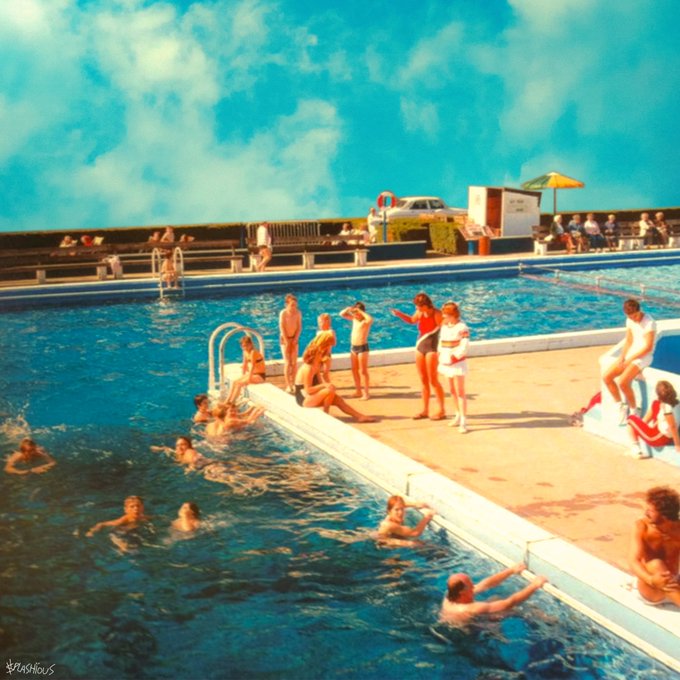 day 17/365 “rooftop pool” available for cover art, DM me. Prints available, link in thread. #collage #collageart #digitalart #digitalcollage