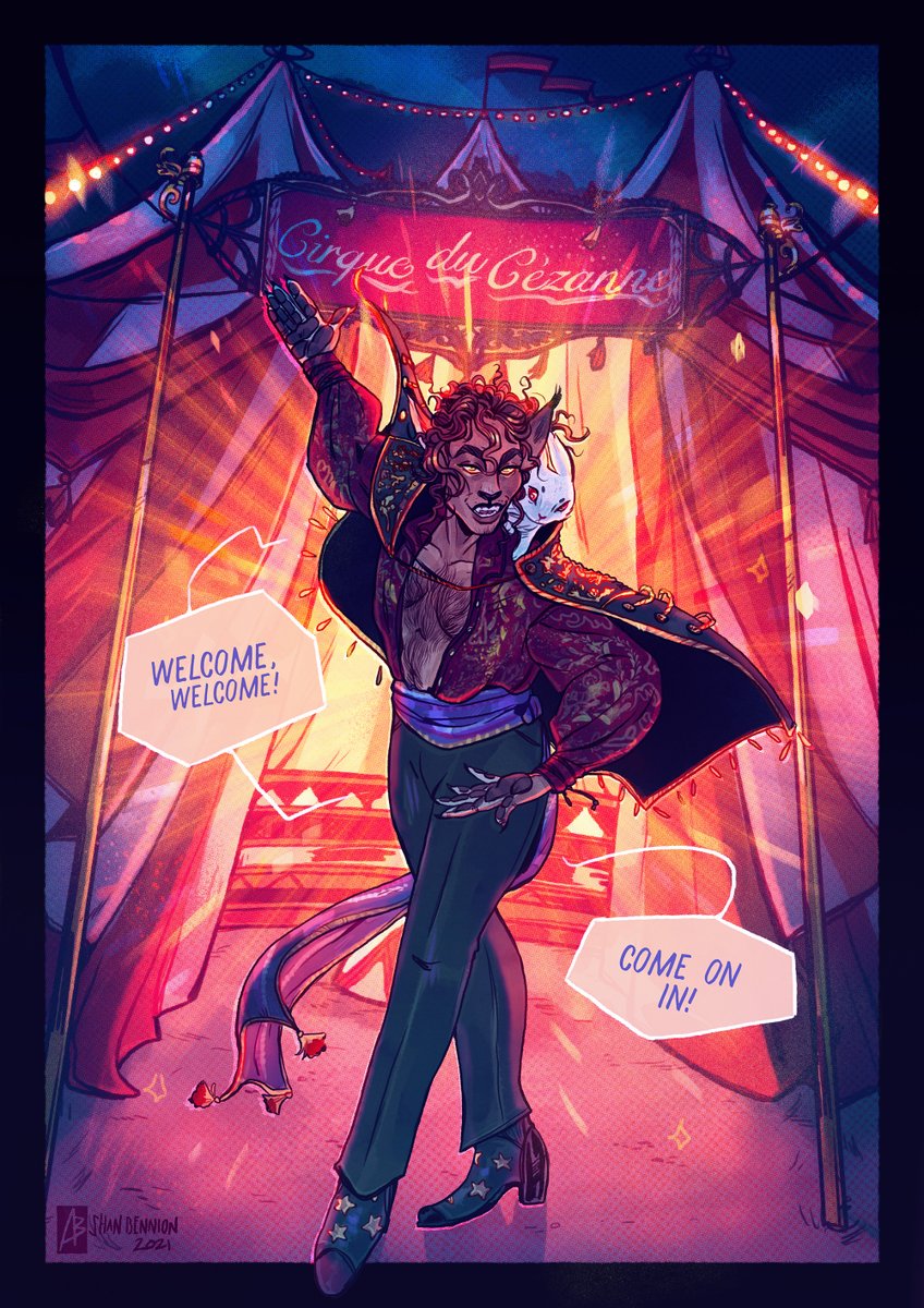 illustration commission for @motelphone of Salazar "Sal" Cézanne and his marvellous show! 🐇🎪 #anonbeadraws #commission #digitalcommission #art #digitalart #Illustration #DigitalIllustration #circus #tent #rabbit #swiftstrideshifter #dnd #dndcommission #dndart