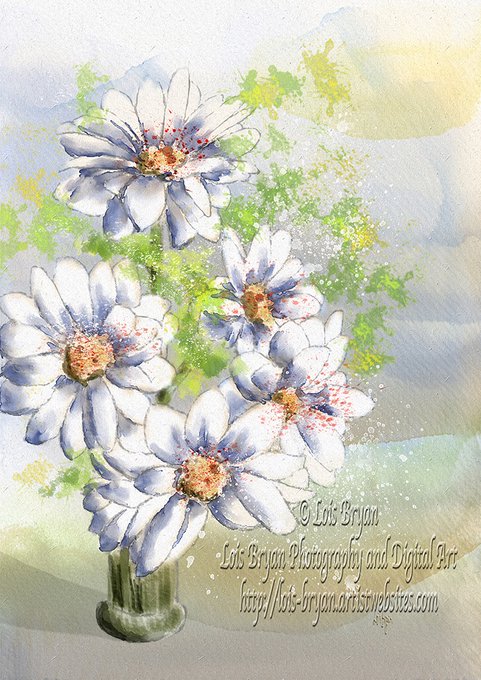 I seem to be on a daisy kick right now ... here's one more. "Daisies In A Vase" and was hand painted in #Rebelle in a #watercolor style. Big fun!!! lois-bryan.pixels.com/featured/daisi… #digitalwatercolor #digitalpainting #daisies #flowers #LoisBryan
