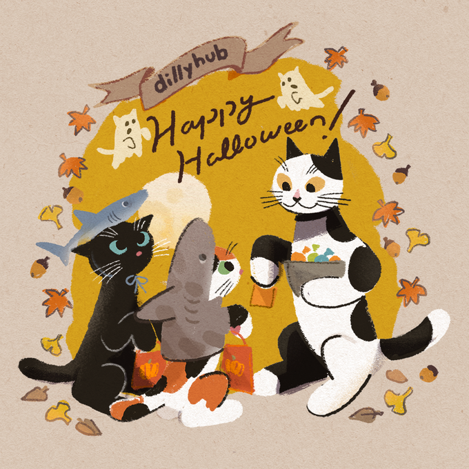 Bite or treat?🦈🎃Our dilly cats are getting ready for the most spooky night of the year ¿What are your plans for #halloween? #inktober #sharktober #dillyhub