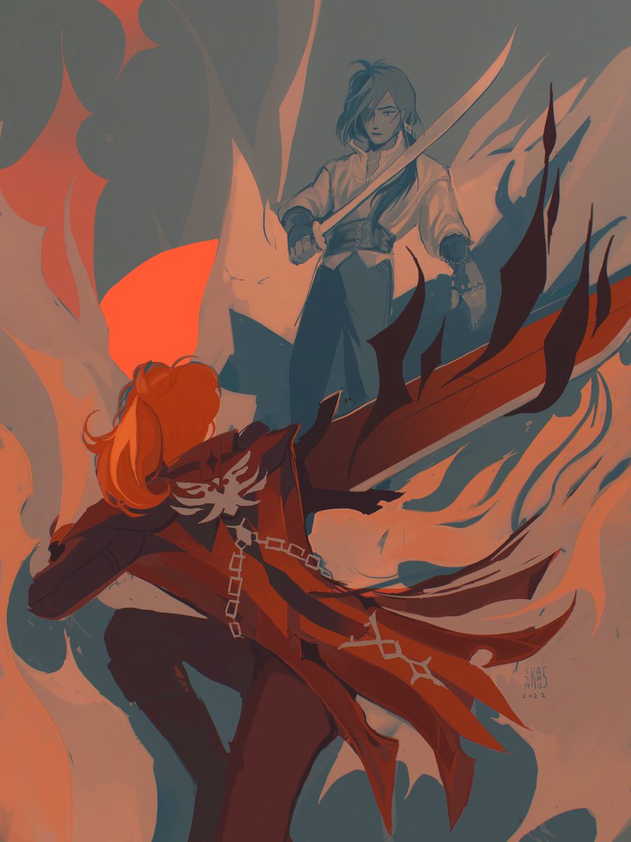 5. #Flame the sea-lord become ikan bakar. I'm doing #Inktober + #GenshinImpact again. Follow me to get surprised. --- #artofMY #inktober2022 #inktober2022Flame #inktoberFlame #diluc #dilucSkin