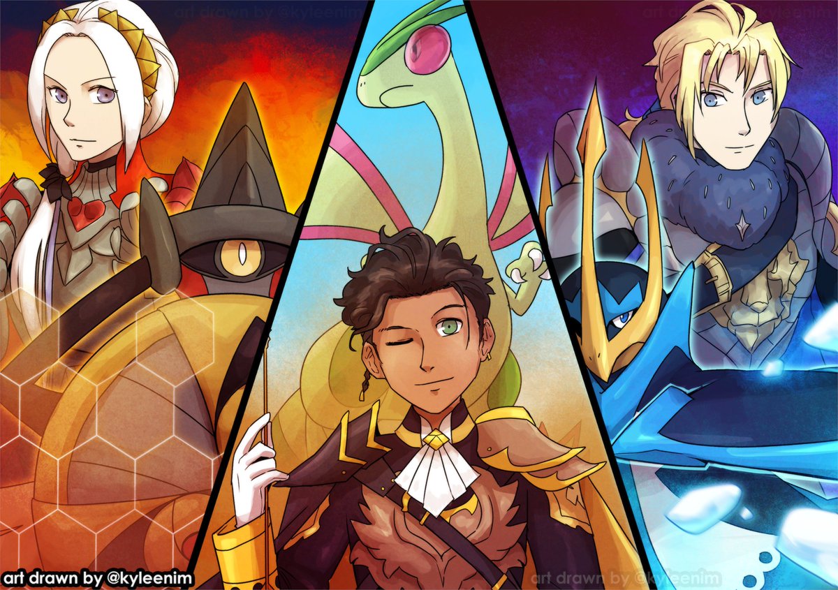 Just a Fire Emblem x Pokemon crossover....wanted to contribute bc I did want to try drawing the three together lol #FireEmblemThreeHopes #FEW3H #EdelgardvonHresvelg #ClaudeVonRiegan #DimitriAlexandreBlaiddyd