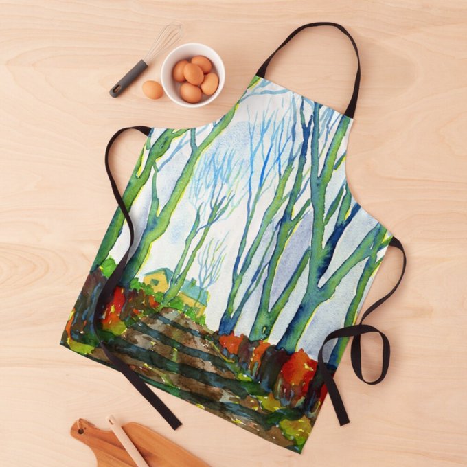Warslow Village tinyurl.com/e6m4ez77 A minimalist wet-in-wet gouache painting from years ago in my #Redbubble shop #SmallBusinesses #SupportSmallBusinesses #IndependentArtist #Warslow #Derbyshire #PeakDistrict #Scenery #Watercolour #Kitchen #Dining #Decor #Apron #Coasters