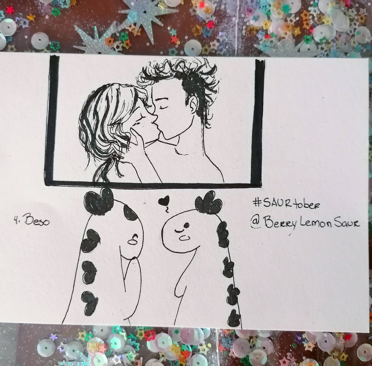 Día 4 del #SAURtober Beso 💋 . . @BerryLemonSaur . #BerryLemonSaur #SAURtober #Inktober #drawing #ink #dinodrawing #traditionalart #myart #inktober2022 #thekiss