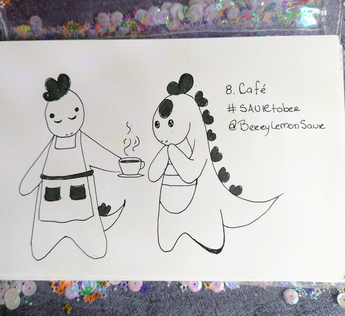 Día 8 del #SAURtober Café ☕ . . @BerryLemonSaur . #BerryLemonSaur #SAURtober #Inktober #drawing #ink #dinodrawing #traditionalart #myart #inktober2022 #inkart #Inking
