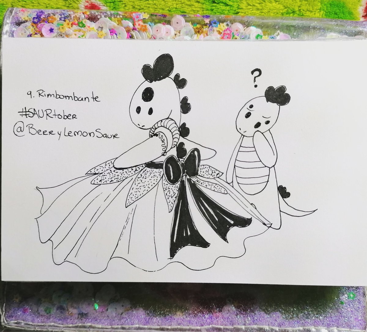 Día 9 del #SAURtober Rimbombante Y creo que le faltó tul al vestido 🤭 . . @BerryLemonSaur . #BerryLemonSaur #SAURtober #Inktober #drawing #ink #dinodrawing #traditionalart #inktober2022 #inkart #inking