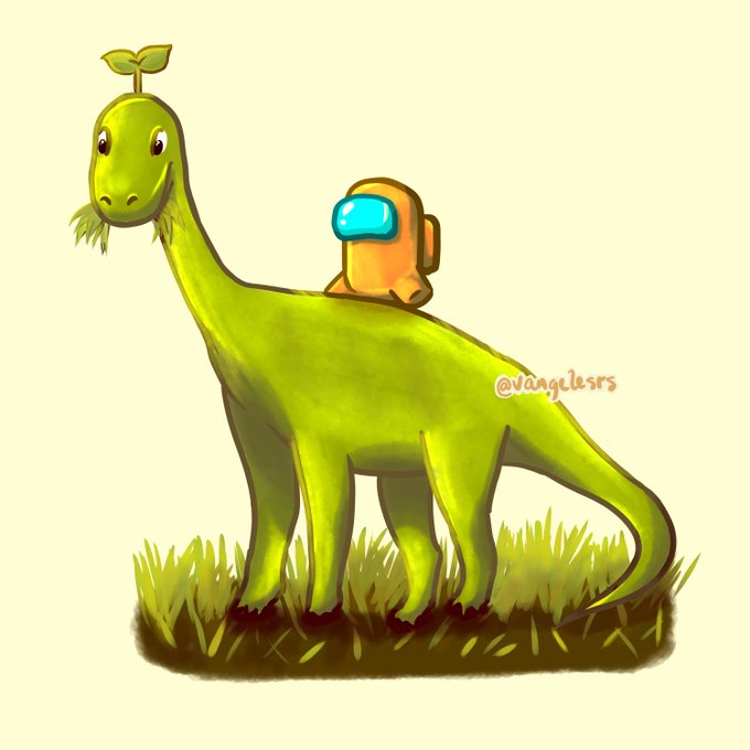 Este pequeño saurópodo lleva un tripulante a cuestas. 🦕🌱 Ilustración rapidonga del evento de @nouconcept de hoy el cual disfrutamos mucho ✨ #dinosaurio #amongus #clasesdedibujo #ilustration #draw #clipstudiopaint #digitalart #art