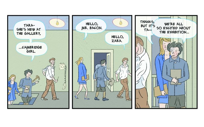 Francis Bacon graphic novel continues: 'Valerie-from-the-Gallery' and her new assistant have turned up to collect paintings, uh oh...' #inktober #graphicnovel #comics #modernart #20thcenturyart #glasgowschoolofart #FrancisBacon #illustration #Scotland #Glasgow #djcad #paris #wip