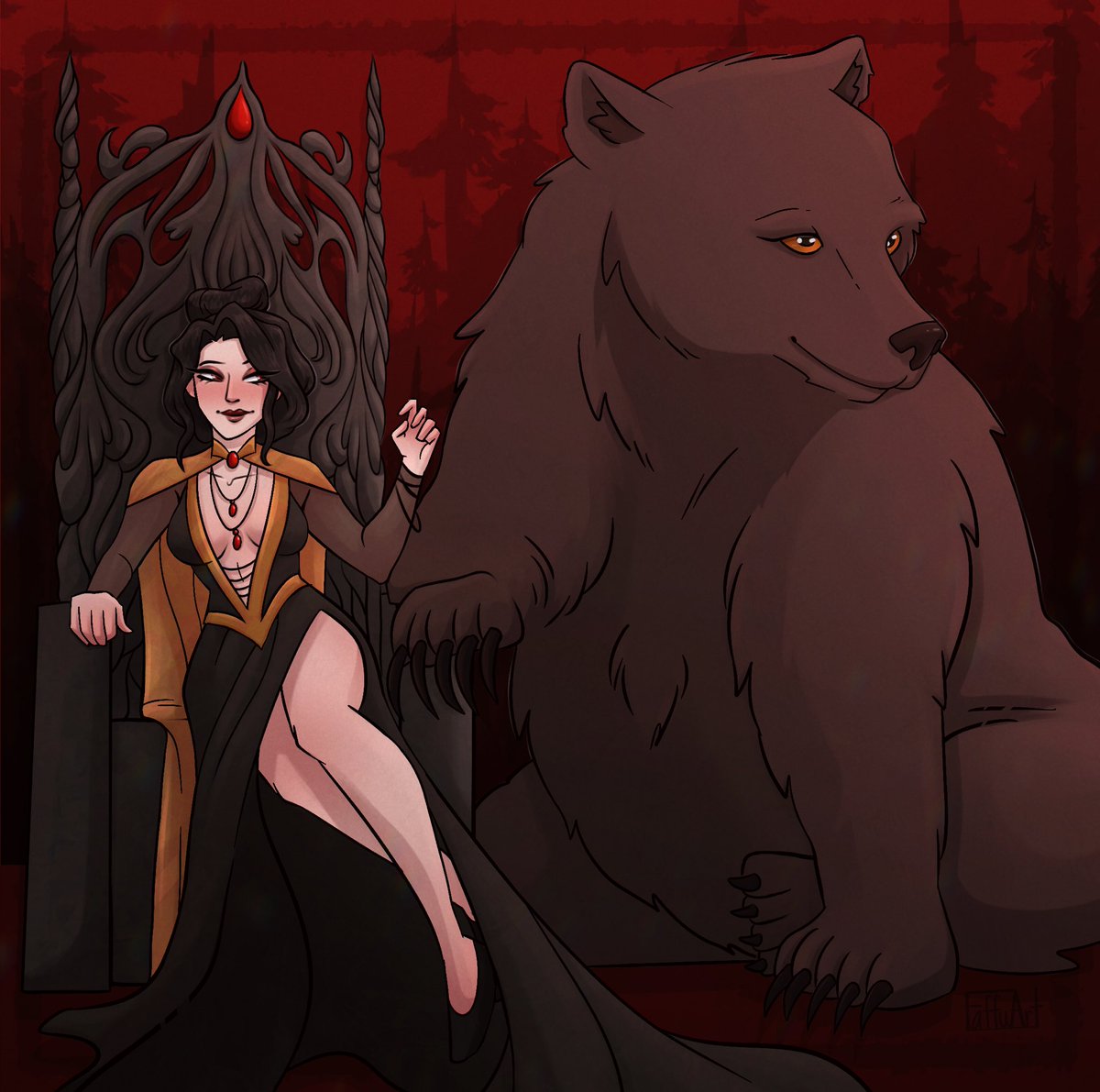A commission of a tiefling named Ariadne with her owlcat familiar! #dnd #dnd5e #dungeonsanddragqueens