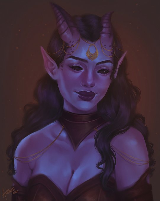 After playing hours of dbd with @fiannans and having awesome rounds, I was way too awake to sleep, so I spent a bit more time and finished this Tiefling lady <3 #dndart #dndcharacterart