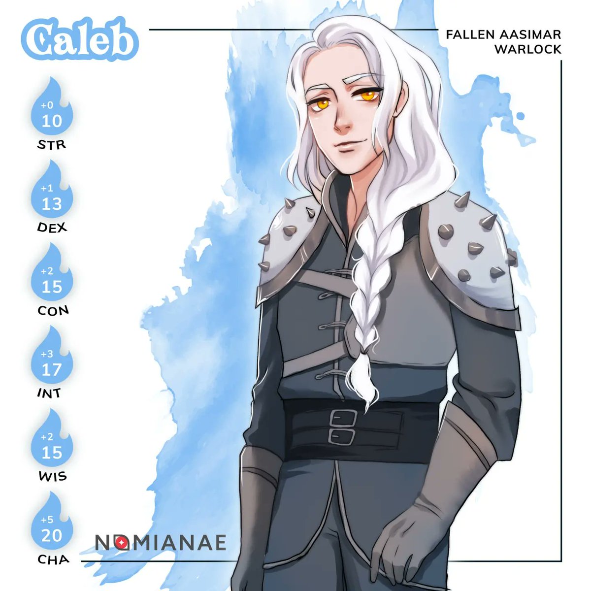 This is Caleb, my first DnD character. An aasimar warlock ✨ Haunted by a curse, but with a kind heart 💛 Played him in a homebrew campaign. #dndart #dungeonsanddragons #dndcharactersheet #dungeonsanddragonsart #DnDcharacter #fantasyart #dndwarlock