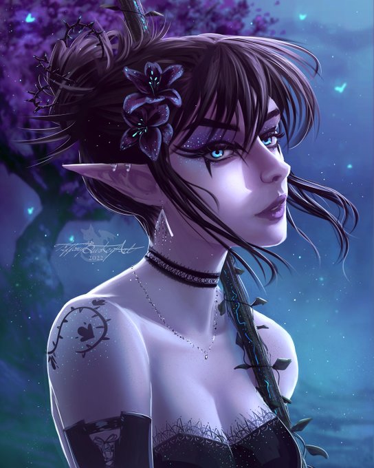 Character commissions open! tiffanyburkeyart.com/character-comm… For this week's character I had an idea for an elvish druid that specializes in bioluminescence! #dnd #dungeonsanddragons #dndart #dndcharacter #dndcharacterart #dndelf #dnddruid #dndcommissions #commissionart #commissionartist