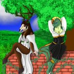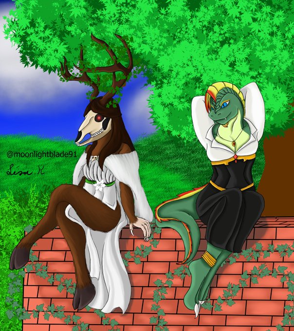 my #druid ivy (left) and #artificer greenscale (right) taking a short break after a long day of walking and fighting. #dnd #dndcharacter #dnddruid #dndartificer #dndart #dndartwork #dndlizardfolk #art #artwork #drawing #illustration #furry #digitaldrawing #digitalillustration