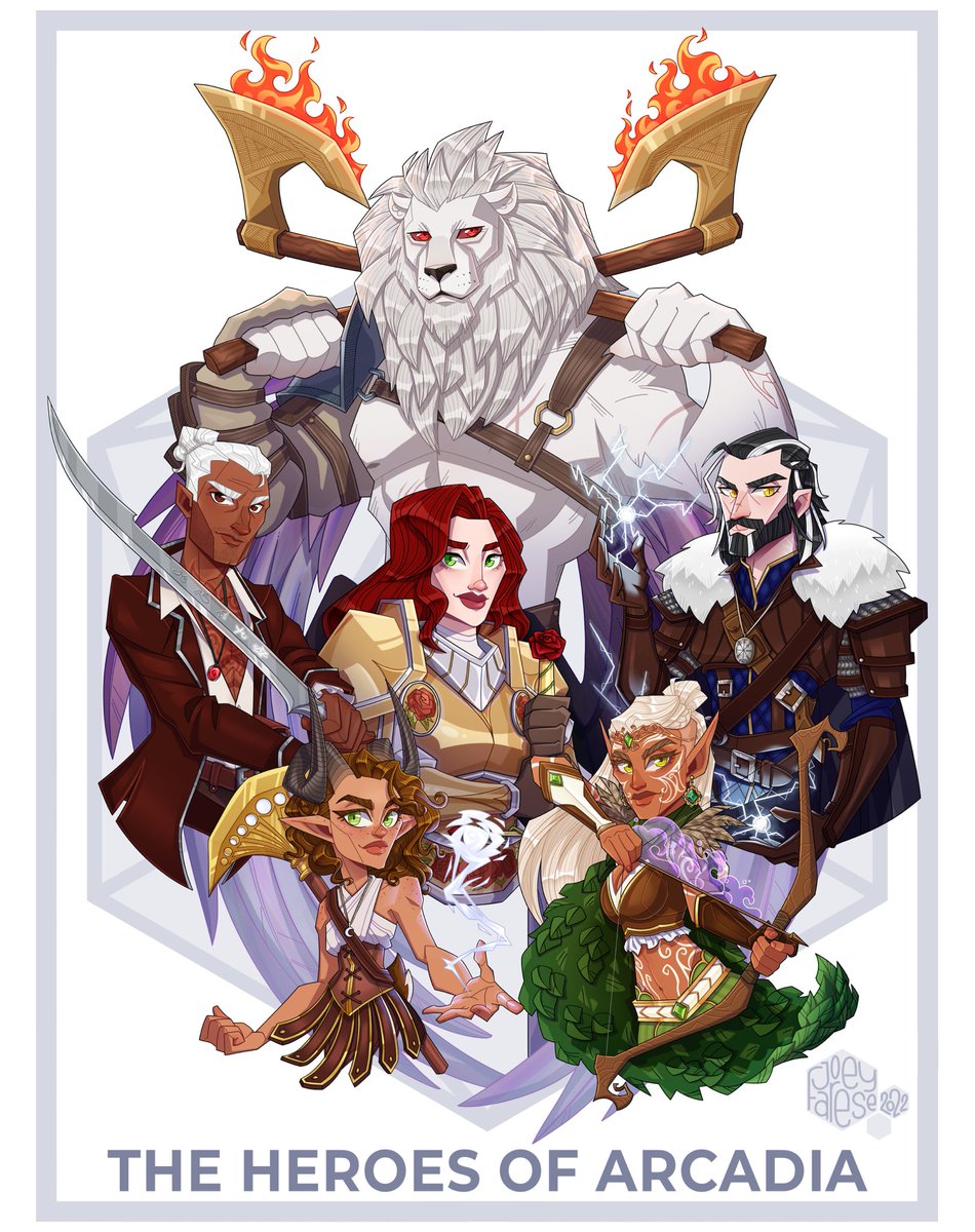 The Heroes of Arcadia (commission) • #characterart #characterdesign #dnd #dnd5e #dndart #charactercommission #thewizardssketchbook #dndparty #dndgroup