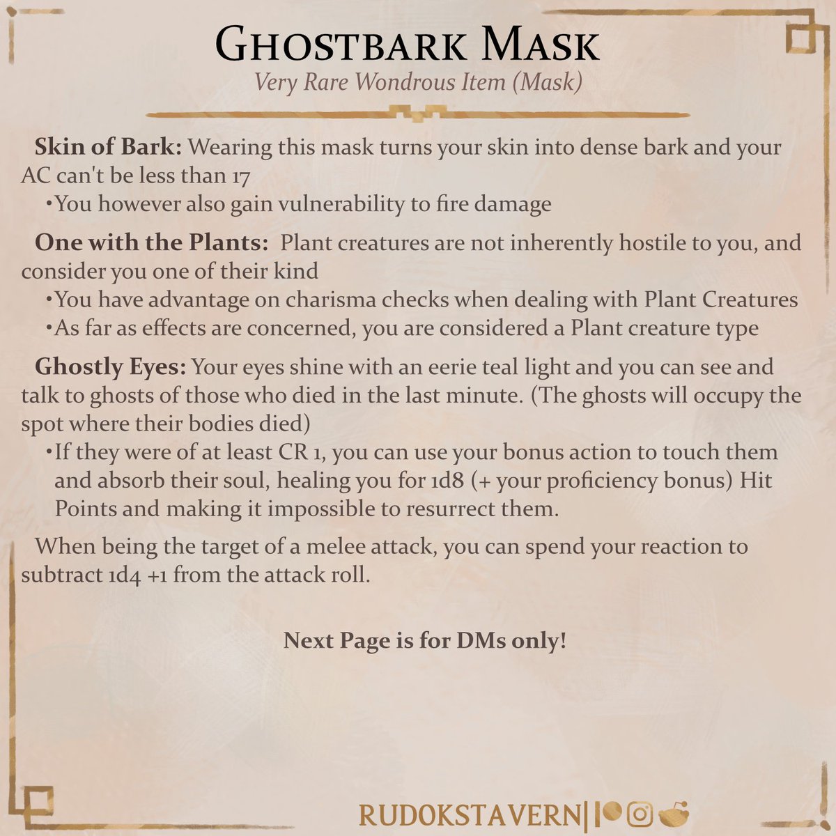 Ghostbark Mask, ghostly mask to spook the monsters that want to spook you... #dnd #dndart #dungeonsanddragons #dndhomebrew