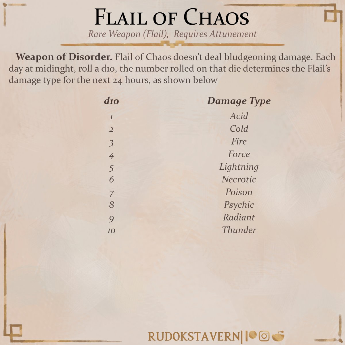 Flail of Chaos, weird weapon with chaotic stats... #dnd #dungeonsanddragons #dndart #dndhomebrew