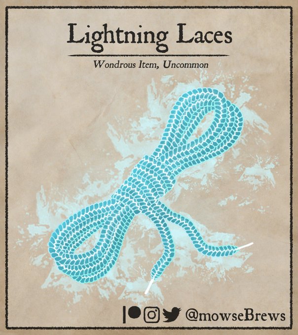 Lightning Laces - A perfect item for early game parties! It's decent on everyone, so it gets them talking about strategy. Who needs to move more? Who wants to go first in combat? #dnd #dndart #dndhomebrew