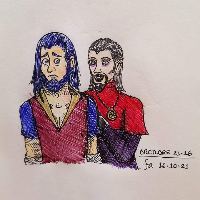 Día 25 del #orctubre2021 Kaz y su nuevo yo 💖 #dndart #dndmexico #inktober2021 #ilustracion #Tintubre