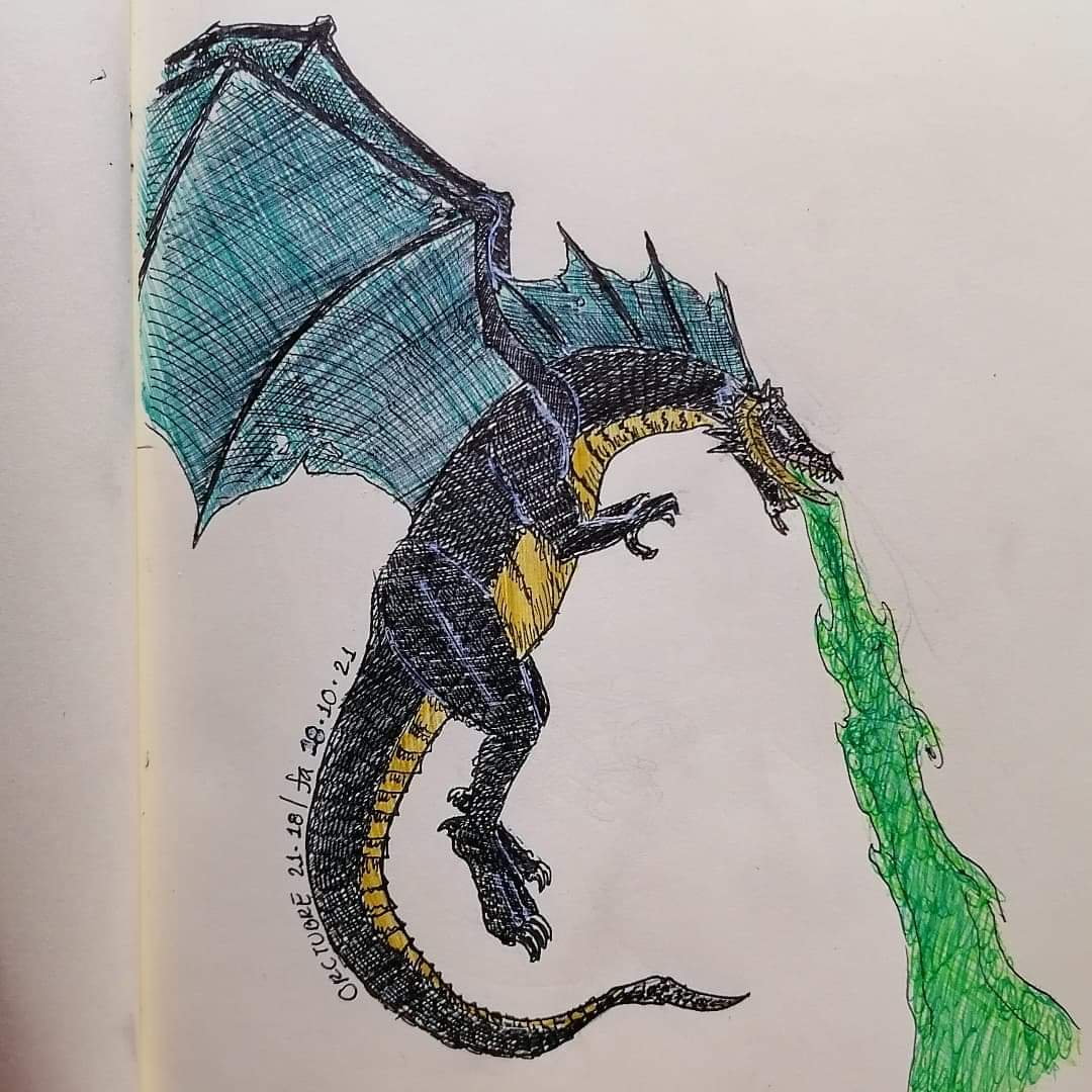 Día 18 del #orctubre2021 Esto es lo que había tras la temible sombra de alas negras, el primer dragón que enfrentaron los valientes Colmillos con Cuernos #dndart #dndmexico #inktober2021 #ilustracion #Tintubre