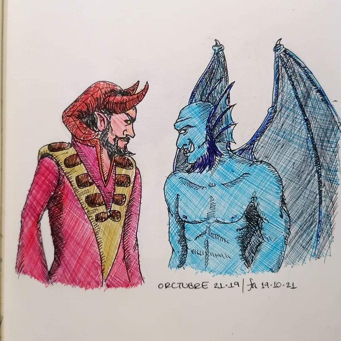 Día 19 del #orctubre2021 En la guerra no hay aliados, sólo acuerdos por conveniencia. Menos entre los señores demonio Asmodeus y Blurru #dndart #dndmexico #inktober2021 #ilustracion #Tintubre