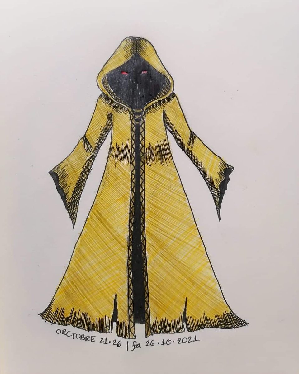 Día 26 del #orctubre2021 El monstruo de amarillo. Me pregunto qué habrá debajo de esa capa 🤔 #dndart #dndmexico #inktober2021 #ilustracion #Tintubre