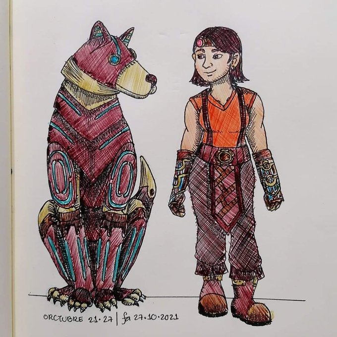 Día 27 del #orctubre2021 Thebani y Ronso bebé. Personaje interpretado por la gran @JimeMosqueda #dndart #dndmexico #inktober2021 #ilustracion #Tintubre