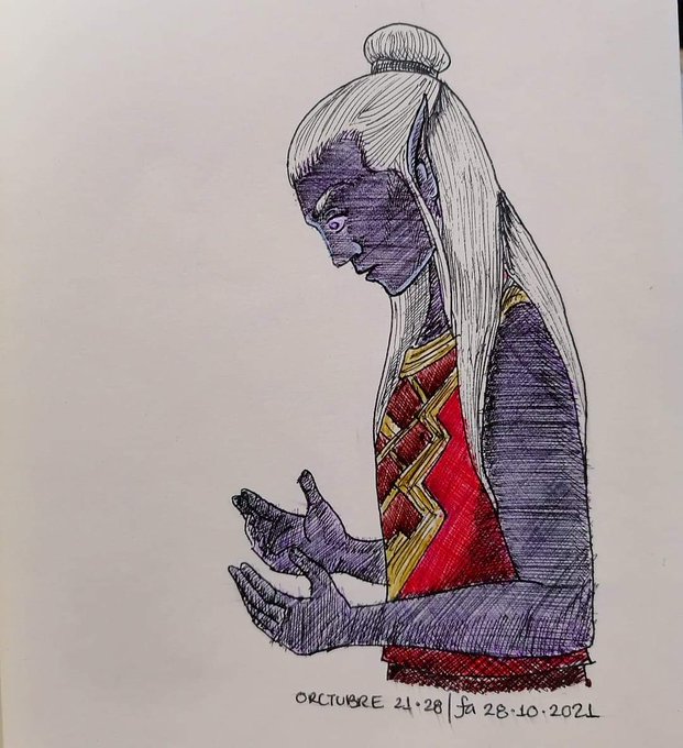 Día 16 del #orctubre2021 Después de este momento en el Shadowfell, Mirok adquirió una incomodidad muy peculiar respecto al terciopelo rojo y la gente edgy #dndart #dndmexico #inktober2021 #ilustracion #Tintubre