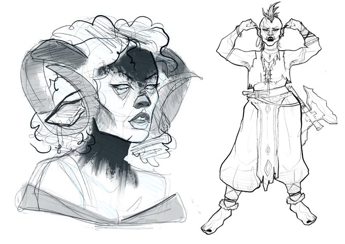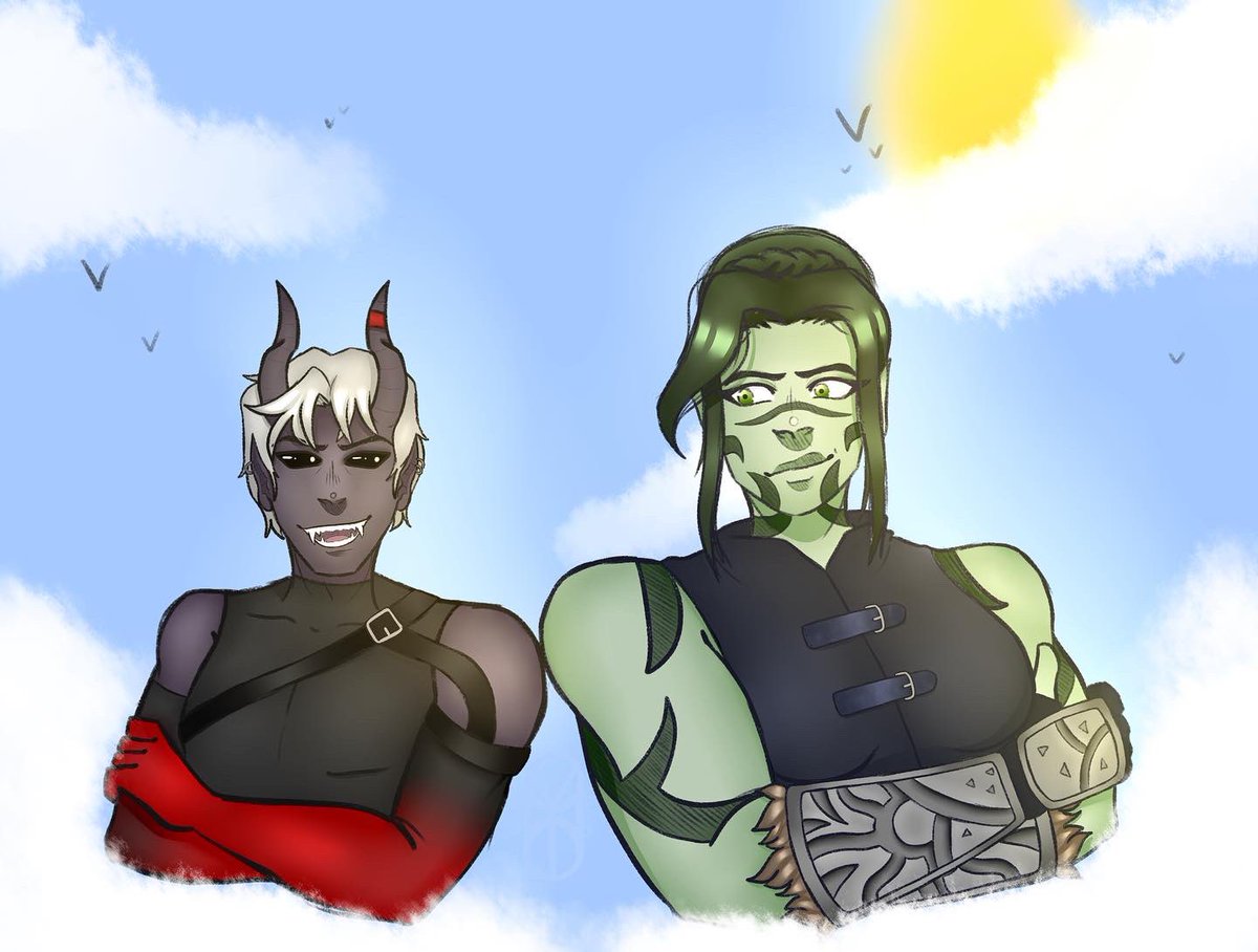I almost forgot to share this here but 😌😌 A doodle for Joyously_Aesthetic on Instagram of part of their D&D team! #dungeonsanddragons #dnd #dnd5e #dndtiefling #dndorc #dndart #dndcharacters #originalart #digitalart #fanart