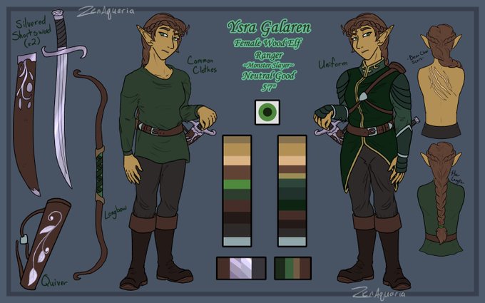 My ranger needed an update to her ref~ I finally figured out what her faction uniform looks like as of the last time I drew her, so her refsheet needed it added! Also really proud of myself for how I'm coming along on drawing humanoids~ #dndart #dndartist #dndranger