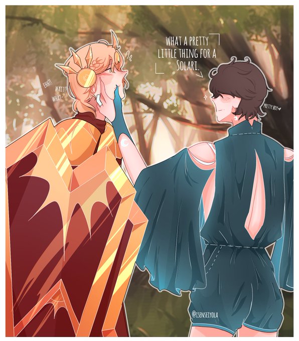 Day 2 Of #dnfthemeweek [LoL] . What happens when one Lunari and one Solari suddenly meet up? Enemies to lovers arc :) . [#dreamfanart @Dream__Fanart #dnf]