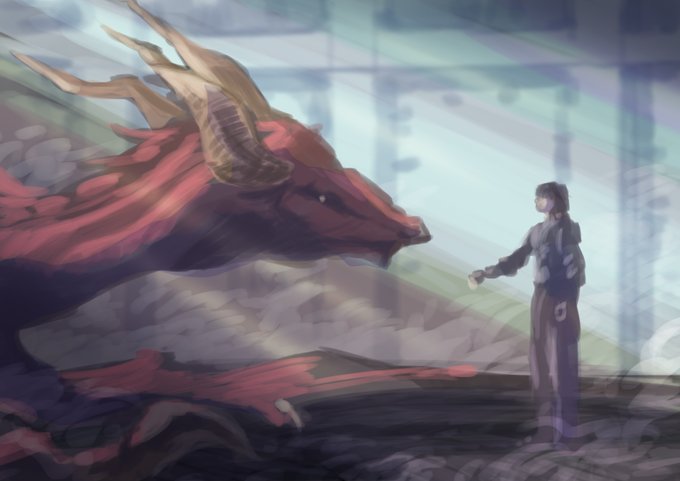 この界隈で需要が無いのは重々承知していますが、好きすぎてDODのアンヘルとカイムを描いてしまいました ドラゴンはロマン 繰り返すドラゴンはロマン(๑•̀ㅂ•́)و✧ このアンヘルさん(ドラゴン)の角の形状の美しさったらない #ドラッグオンドラグーン #DOD #透明水彩