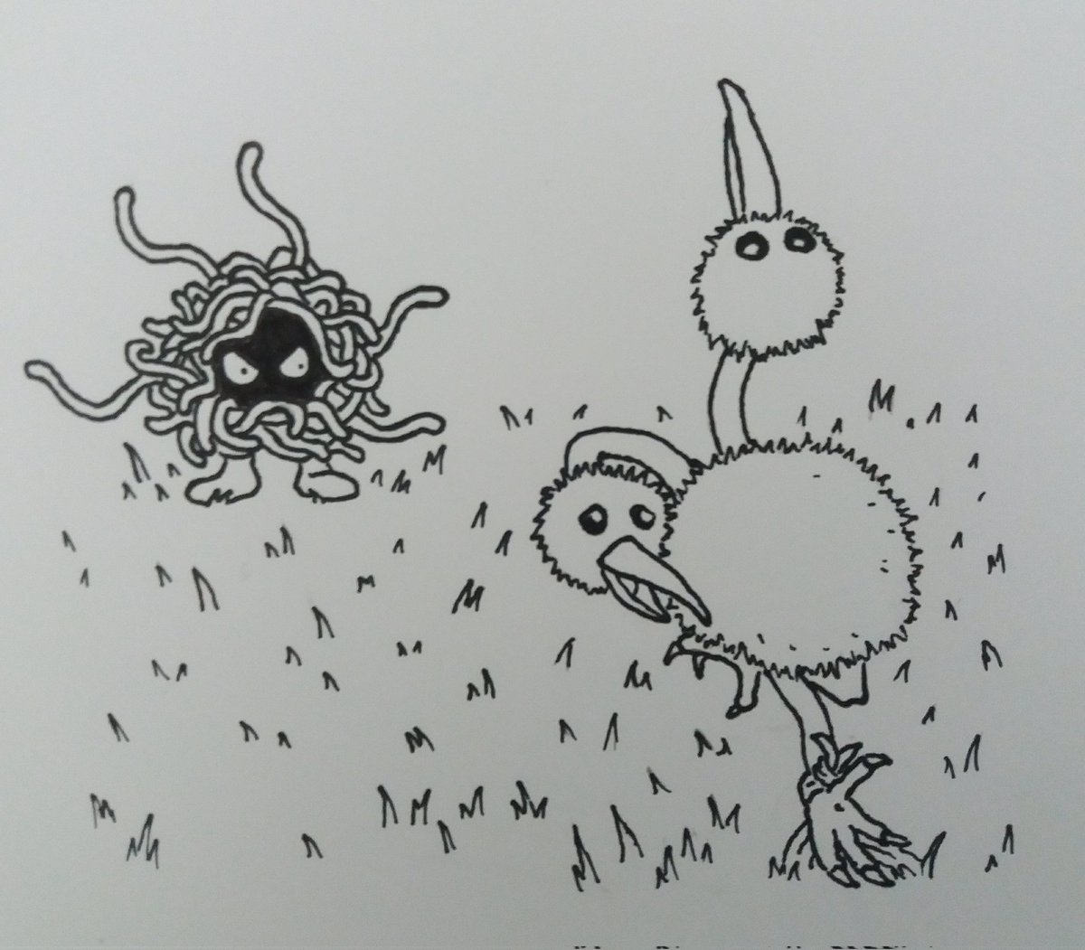 Day 19 Duo Drio eel Dew Mer uk #inktober #drawtober #pokemon #poketober #poketober2022 #crappymon #doduo #dodrio #seel #dewgong #grimer #muk