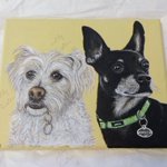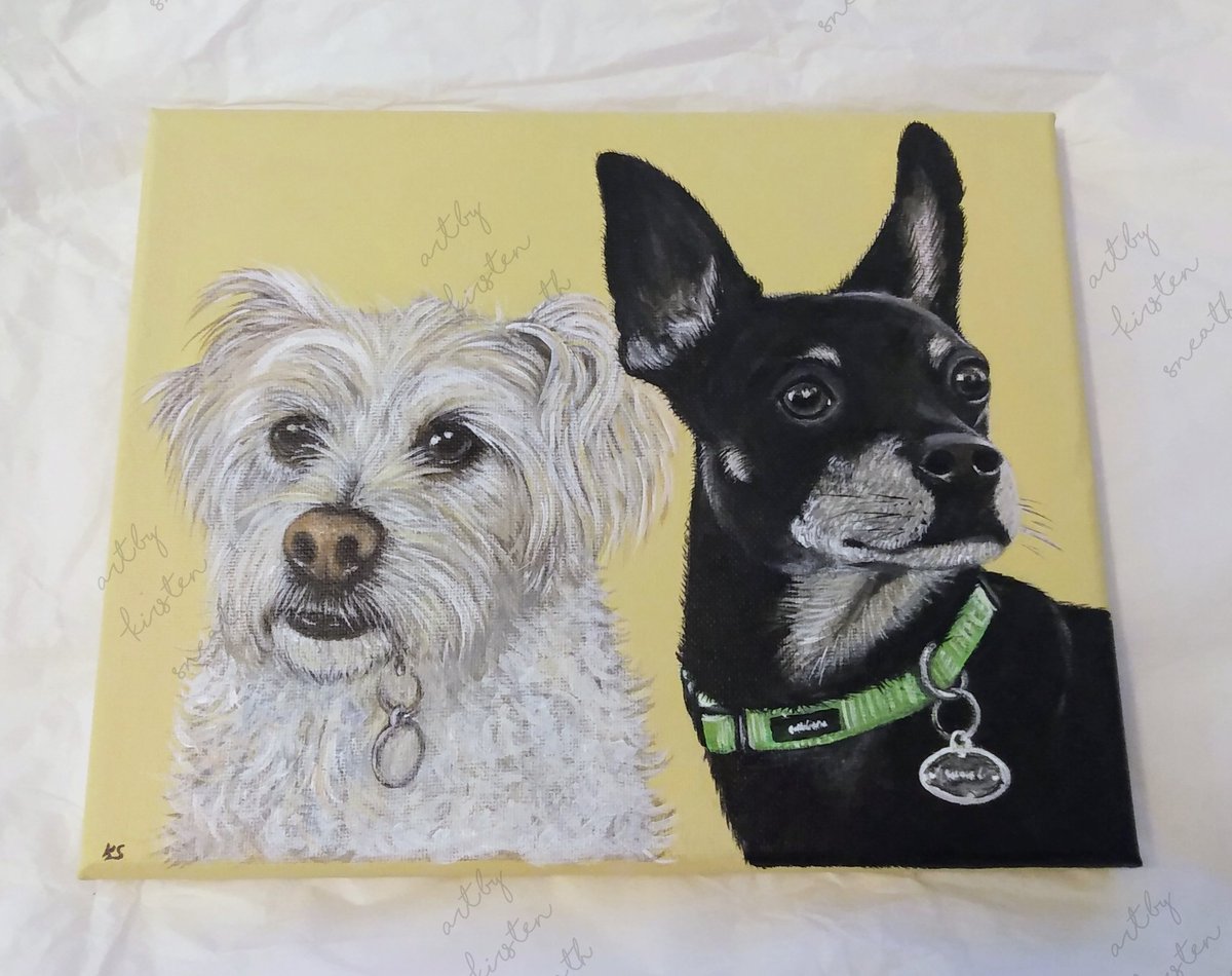 Here's another of my Xmas commissions! Two on one canvas....always fun to try! Hope you are having a great week!🤗💖🤗💖 #petportraits #dogportraits #dogpaintings #2dogs1canvas