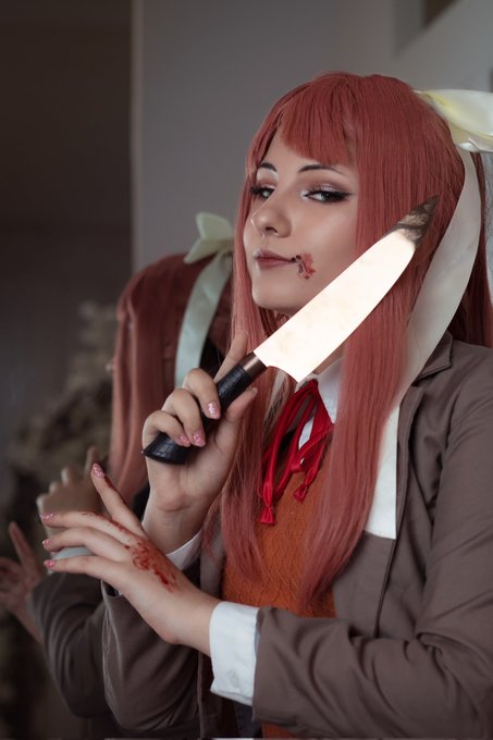 ❗️Fake blood and knife❗️ - Do you accept my confession?❤️ - 📸: @SunnyZoex Helpers: @SunnyZoex and @3velynn__ - #DokiDokiLiteratureClub #DDLC #DOKIDOKI #cosplay #cosplayer #cosplayergirl #Monika #Monikacosplay #monikaddlc