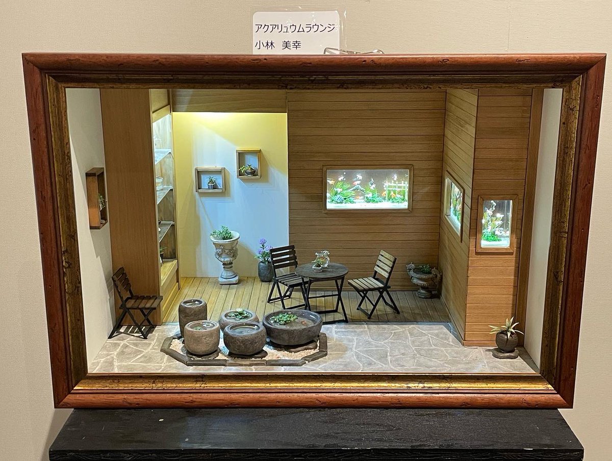 おはようございます☀ . 東海ドールハウス倶楽部展 6日目です。 . 展示中の過去作その① . 1・金魚カフェ 2・柿田商店 3・金魚屋さん 4・Goldfish and Green Shop . #ミニチュア #ドールハウス #miniature #dollhouse @toukaidollhouse