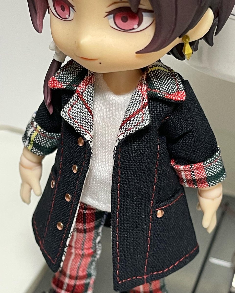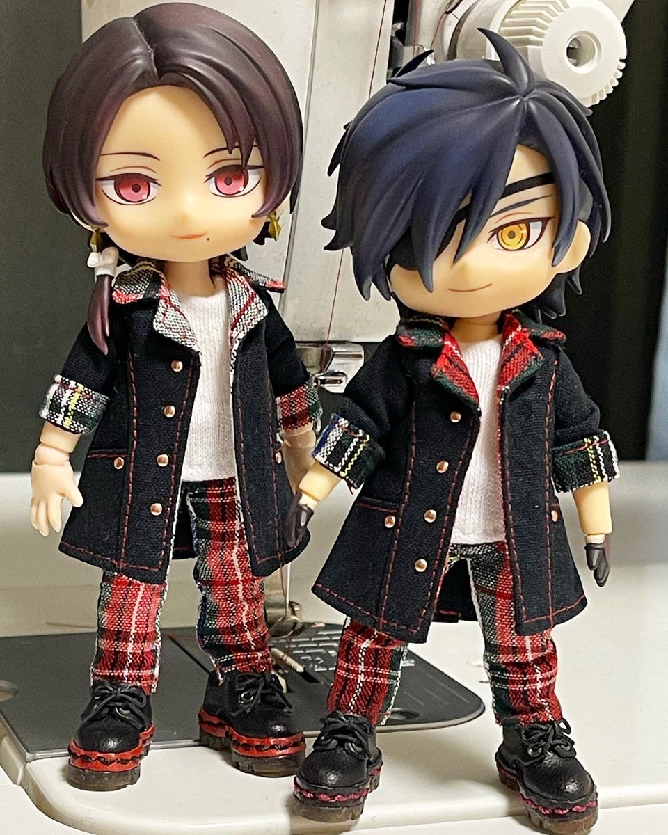 ねんどーるサイズ 黒クロコート🧥セット オビツ11サイズ製作中 AKガーデン F5 D21 #dollsclothes #オビツ11 #オビツろいど #ねんどろいど #ねんどろいどどーる