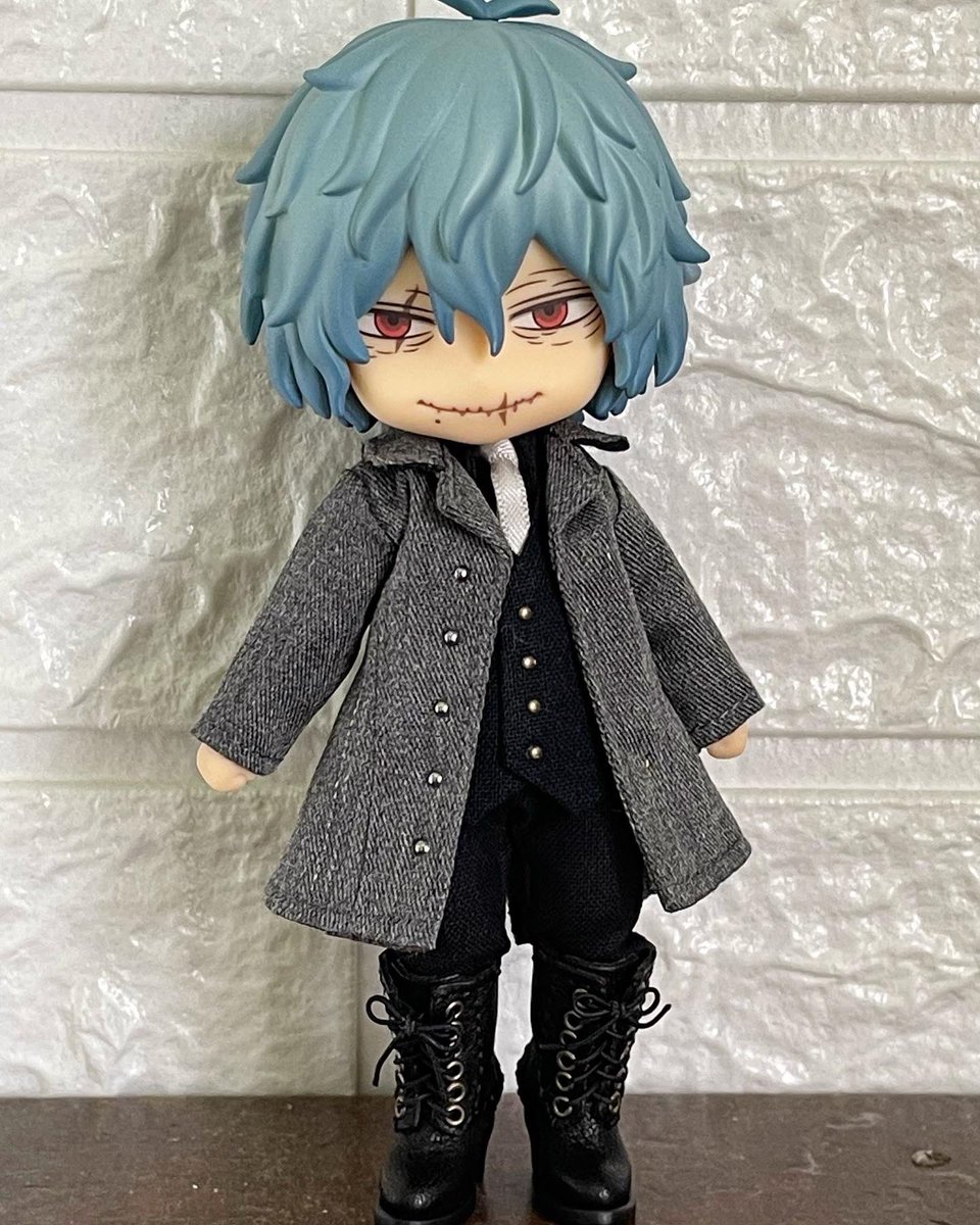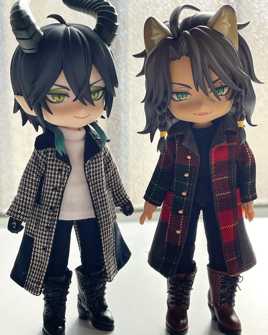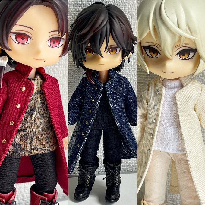 ねんどーるサイズ グレーコート🧥セット① オビツ11サイズ製作中 AKガーデン ロングブーツ いとのくつさん(@itonokutsu ) #dollsclothes #オビツ11 #オビツろいど #ねんどろいど #ねんどろいどどーる