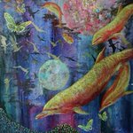 Dive…. Alcohol Inks and Windsor and Newton Ink. #ArtistOnTwitter #Dolphins #contemporaryart #painting