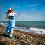 Sometimes it's nice to live close to the beach, some gorgeous colours coming out. @starlightdream as Thumbelina throwing some stones and looking wonderful. #thumbelina #donbluth #cosplay #cosplayer #thumbelinacosplay #beach #beachshoot