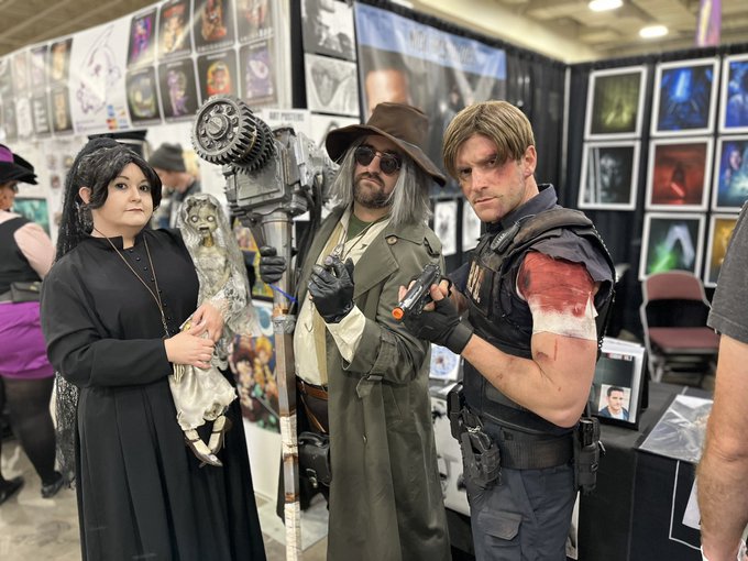 Got to meet the actual Leon Kennedy, @Nik_apostolides with @jadezerocosplay Super nice dude and a great artist and cosplayer on top of voice acting.#ResidentEvil2Remake #RESIDENTEVIL8 #ResidentEvilVillage #re2 #re8 #cosplay #cosplayfamily #LeonKennedy #heisenberg #DonnaBeneviento
