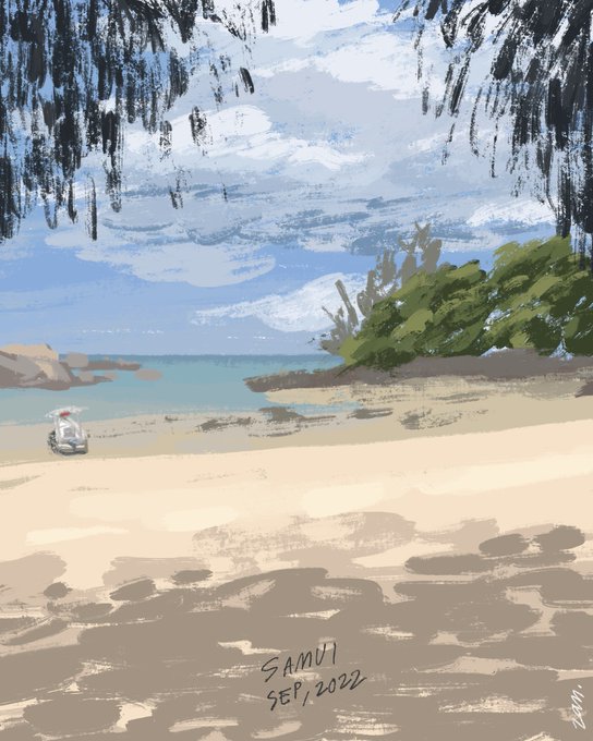 ทะเลสวยน้ำใส 🌊🏝☀️ Cape Fahn - Samui —— 1.5 hours sketch #doodleby2an #Illustrations #procreateart twitter.com/2an_doodle/sta…