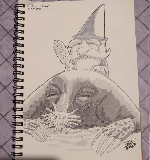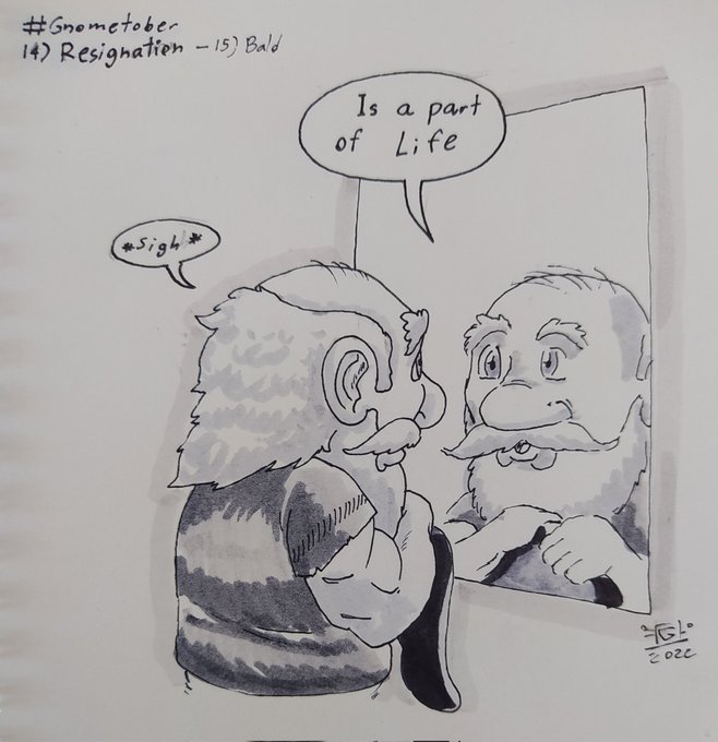#gnometober #doodletober #artober #drawtober #inktober #inktober2022 day 14 & 15 - resignarion & bald
