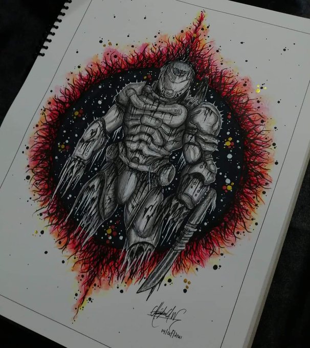 Watercolor painting thing I made back in June. #DOOM #doometernal #doomguy #doomslayer #doomfanart