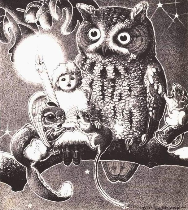 'An Angel in the Woods' by Dorothy Lathrop, 1941 #dorothylathrop #lathrop #angel #illustration #owls