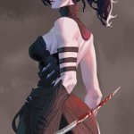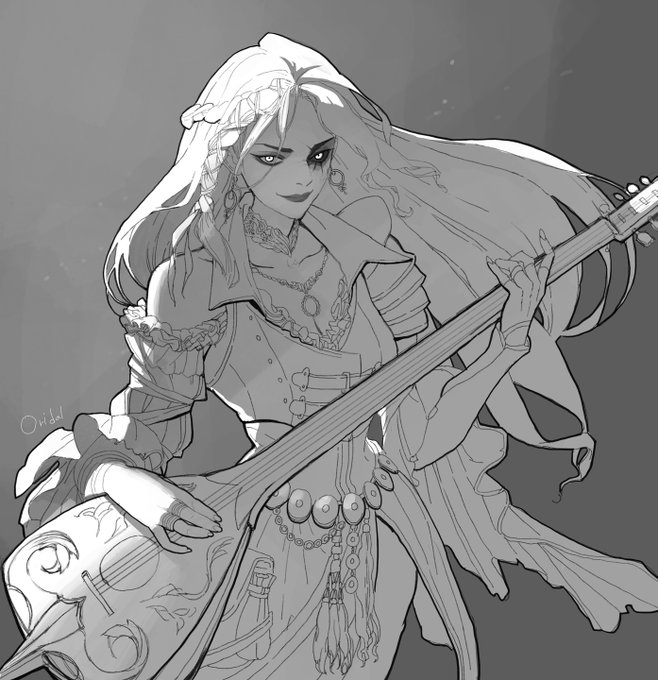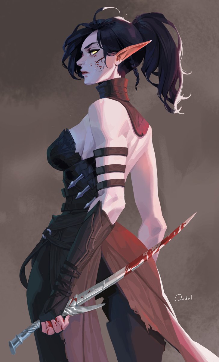 One hand on her kids, one hand on her blade. Those graceful and tall female lizards in #DOS2 are generally pretty wary (except that one who is always high.) #lizardfolk #lizardman